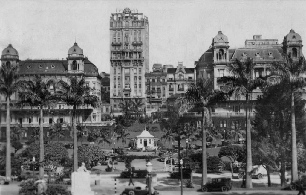 O arquiteto Christiano Stockler das Neves trouxe a lógica americana na bagagem. Enquanto os modernistas como Di Cavalcanti pintavam o Brasil real, Christiano desenhava uma fachada que misturava a rigidez do concreto com o adorno clássico do ferro fundido. No saguão, o mármore de Carrara e as escadarias monumentais avisavam aos passantes: ali, o dinheiro do café tinha virado pedra eterna.